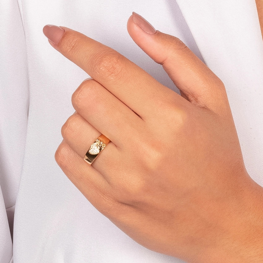 Semijoia Áurea Olympic - Anel Filho Menino com Coração de Micro Zircônia Confeccionado em Banho de Ouro Amarelo de 18K.AnelLargura: 6mmPedra: Micro Zircônia