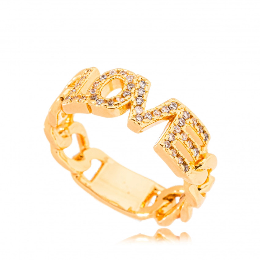 Semijoia Áurea Olympic - Anel Elos Love Micro Zircônia Cristal Confeccionada em Banho de Ouro Amarelo de 18K e Ródio Branco.AnelLargura: 6mmPedra: Micro Zircônia