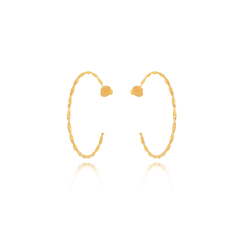 Semijoia Áurea Olympic - Brinco Argola Torcida Lisa Confeccionado em Banho de Ouro Amarelo 18K.