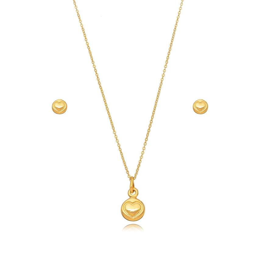 Semij oia Áurea Olympic - Conjunto Infantil Coração Liso Confeccionado em Banho de Ouro Amarelo 18K.